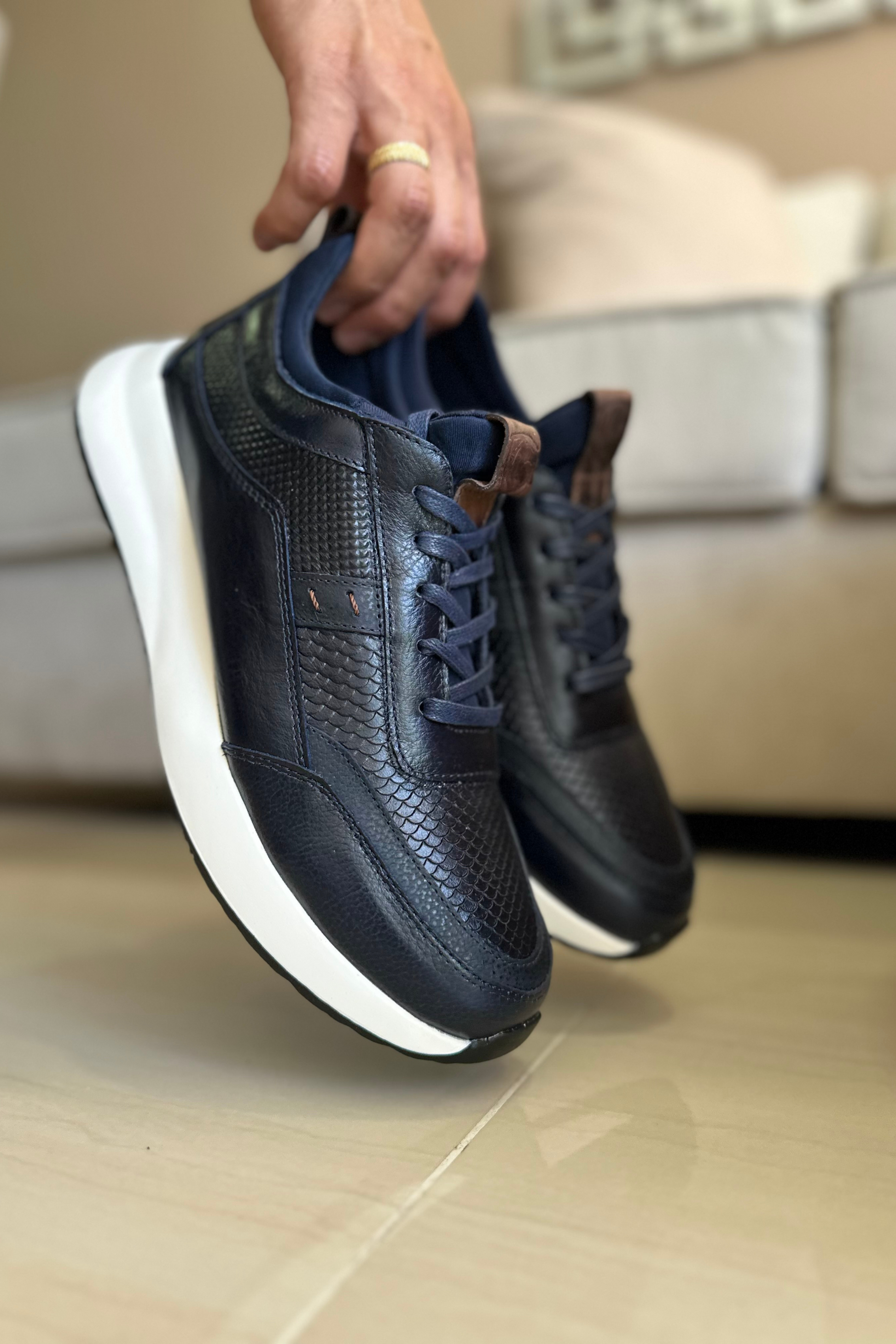 Los BERGEN son unos tenis de diseño contemporáneo elaborados en fino cuero con textura tipo escamada que aporta un carácter distintivo y elegante. Su acabado combina detalles sutiles con un aire urbano, ideal para quienes buscan versatilidad sin sacrificar estilo. La suela liviana brinda una pisada cómoda y fluida, perfecta tanto para el día a día como para ocasiones más casuales con un toque sofisticado.